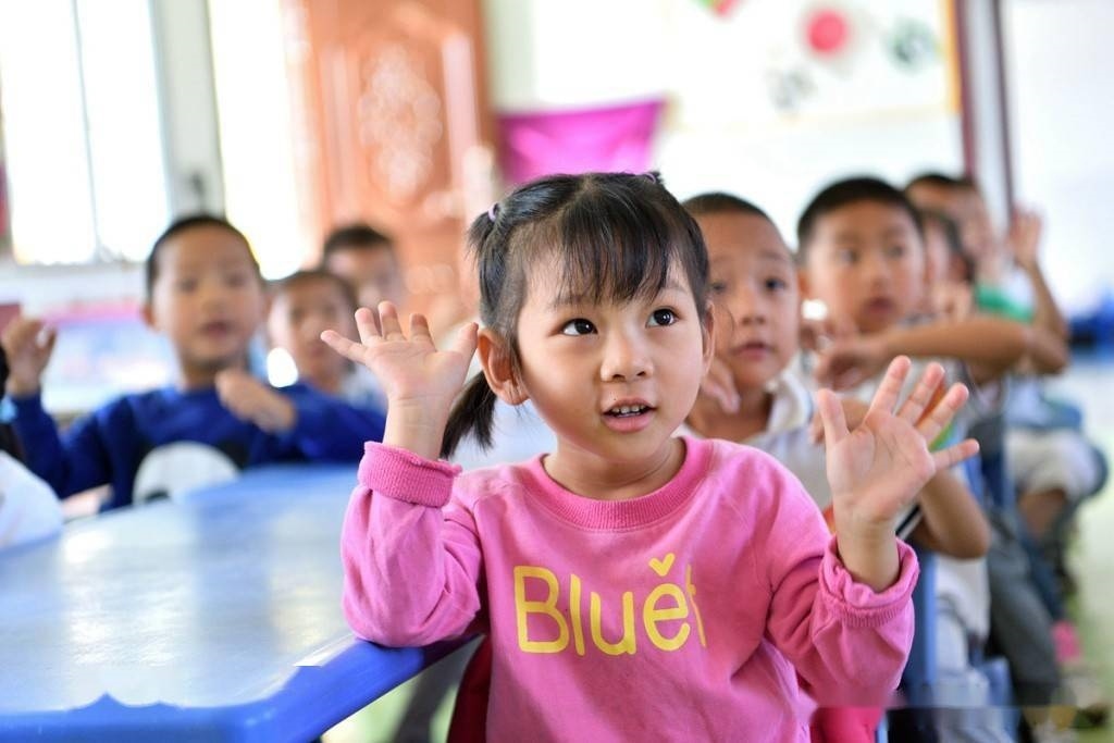 ▲襄陽市保康縣馬良鎮(zhèn)重陽村幼兒園里,孩子們在學習手指歌