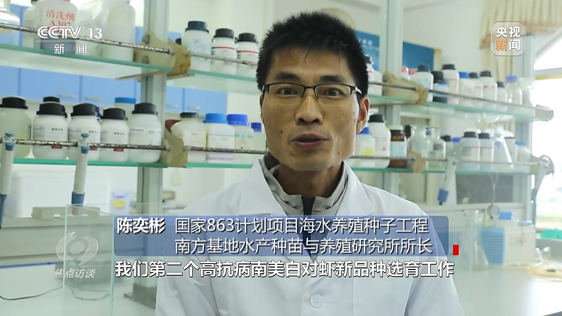 陳奕彬:“基地聯(lián)合中山大學,從多個區(qū)域引進多個種群,組成一個選育的基礎(chǔ)群體,又開始經(jīng)過一代群體選育,加上五代的家系選育,歷經(jīng)大概八代、十年的時間,終于在2011年的時候選出國內(nèi)第一個抗病的南美白對蝦新品種:中興1號?!?/p>