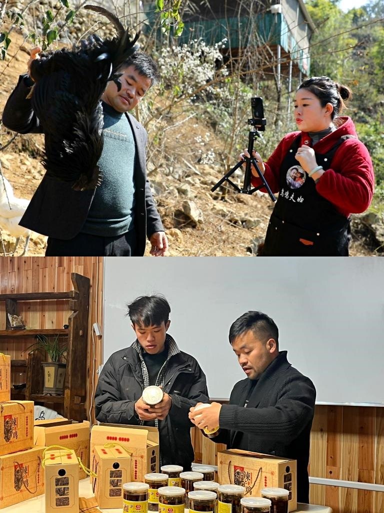 如今,山還是那些山,袁彬已將烏骨雞賣到全國各地。這背后是他為打開銷路進行的探索:他嘗試電商直播,直播間就設(shè)在雞棚。產(chǎn)地直銷、直播選貨……他的直播間經(jīng)常“爆單”。去年9月,袁彬帶著村里幾個年輕人一起搞電商直播,把他們培養(yǎng)成了月薪近萬元的帶貨主播。
