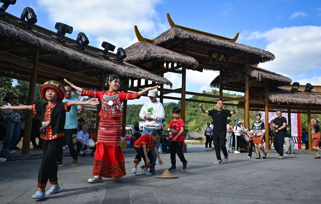 “來吧,大家一起跳起來?!彪S著祈愿健康平安、風(fēng)調(diào)雨順的黎族共同舞音樂響起,王麗冰和姐妹們熱情地拉著大家共舞起來,現(xiàn)場一片歡聲笑語。