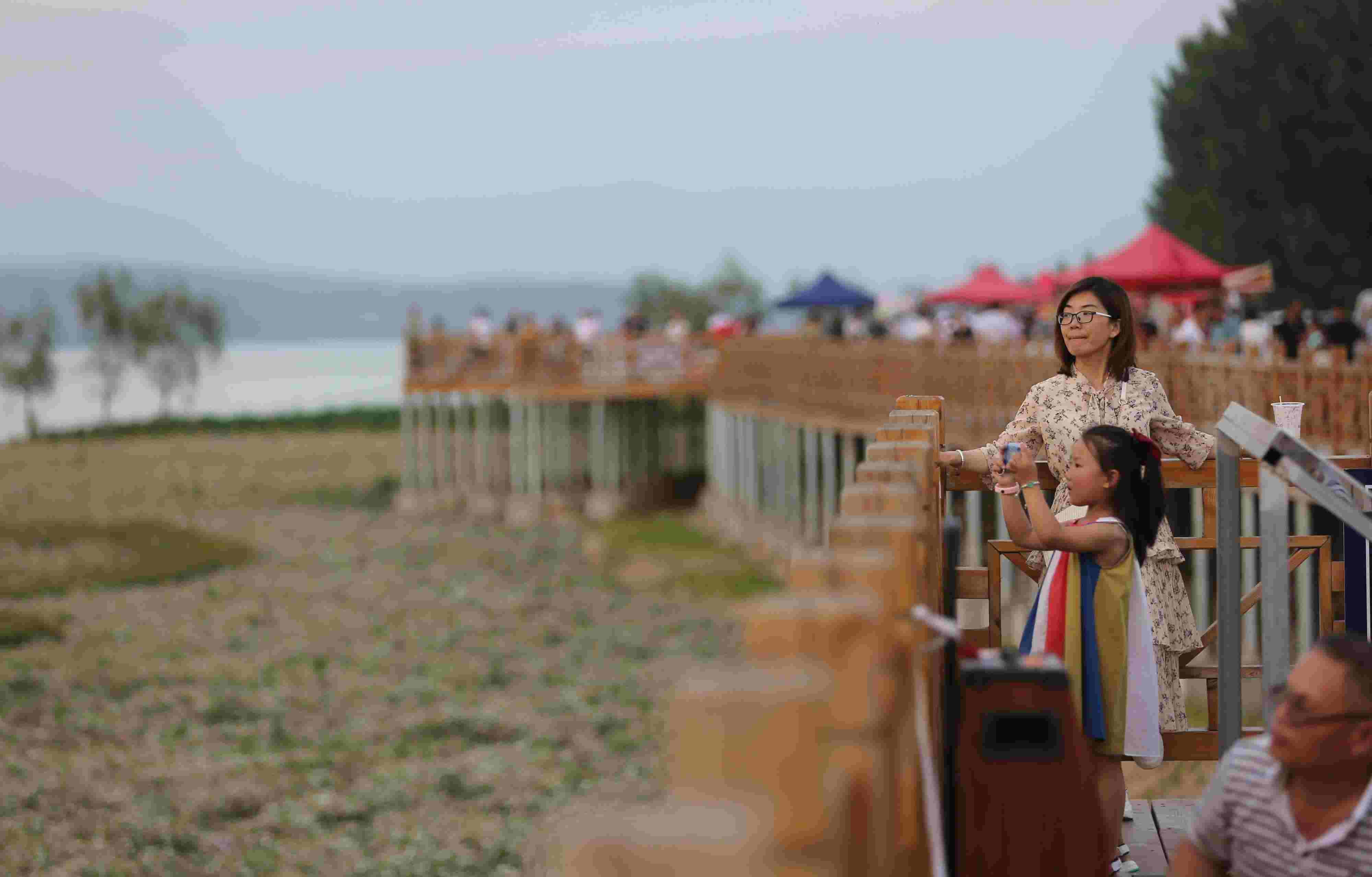 △ 位于三門峽境內(nèi)的黃河生態(tài)廊道美景如畫,吸引著市民前來(lái)觀光旅游、納涼避暑。