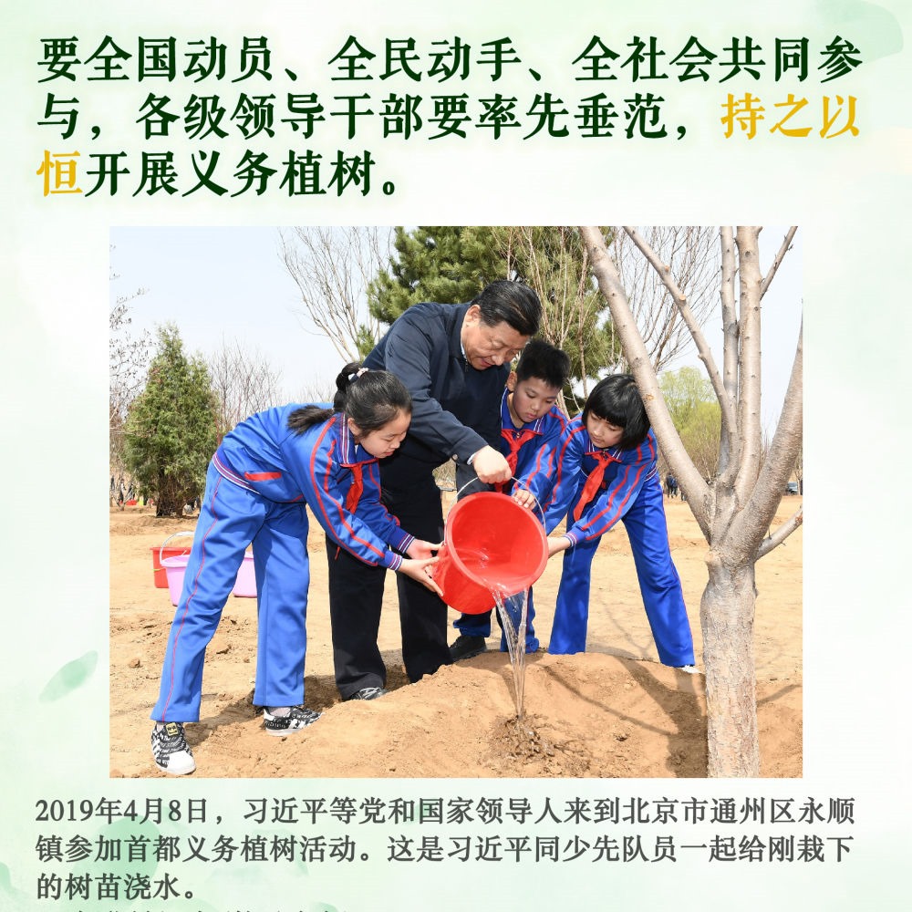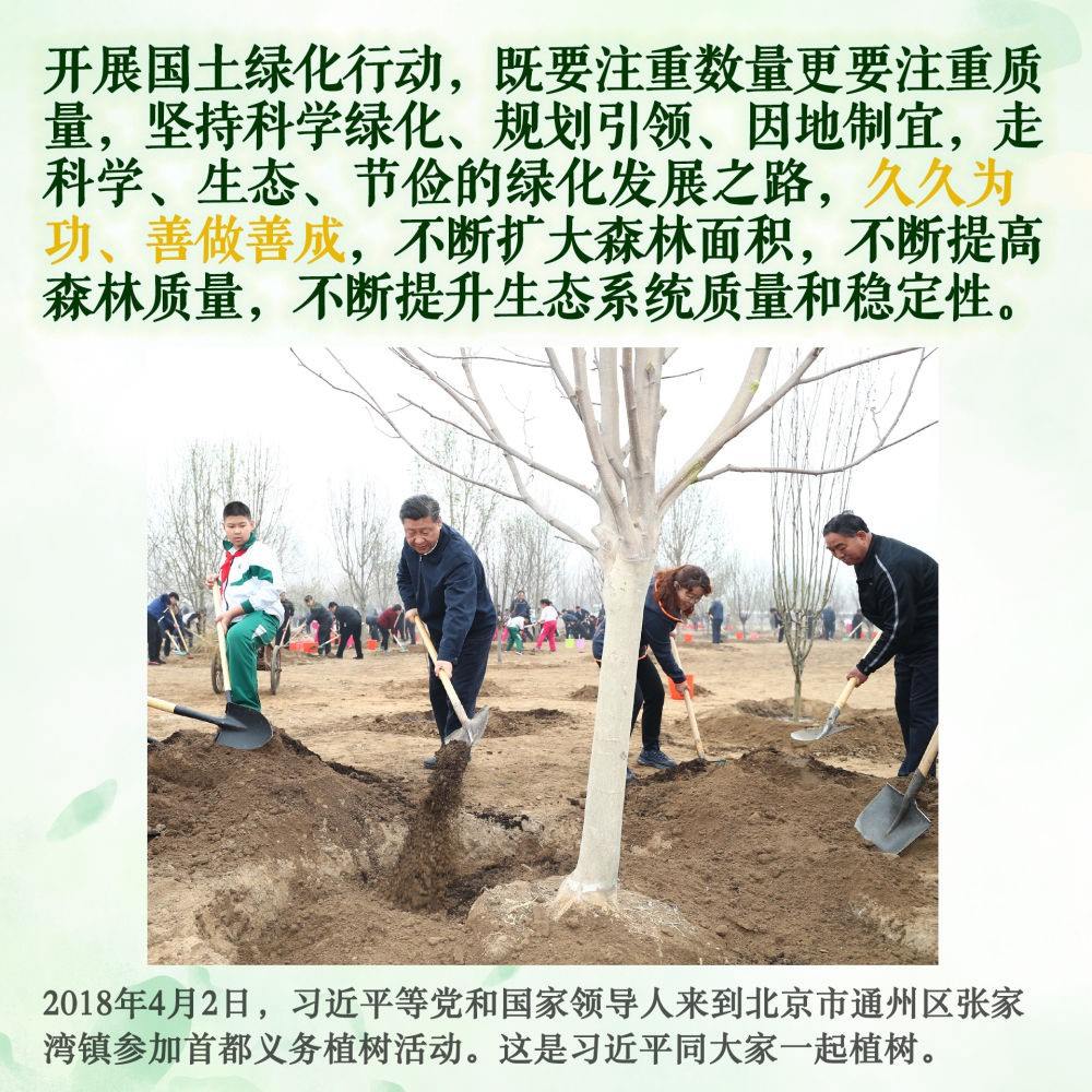 身體力行,持之以恒。此后的11個春天,無論晴雨,總書記都抽出時間加入植綠隊伍,并對國土綠化事業(yè)提出殷殷囑托。堅持,是12年來總書記反復(fù)強調(diào)的關(guān)鍵內(nèi)涵。