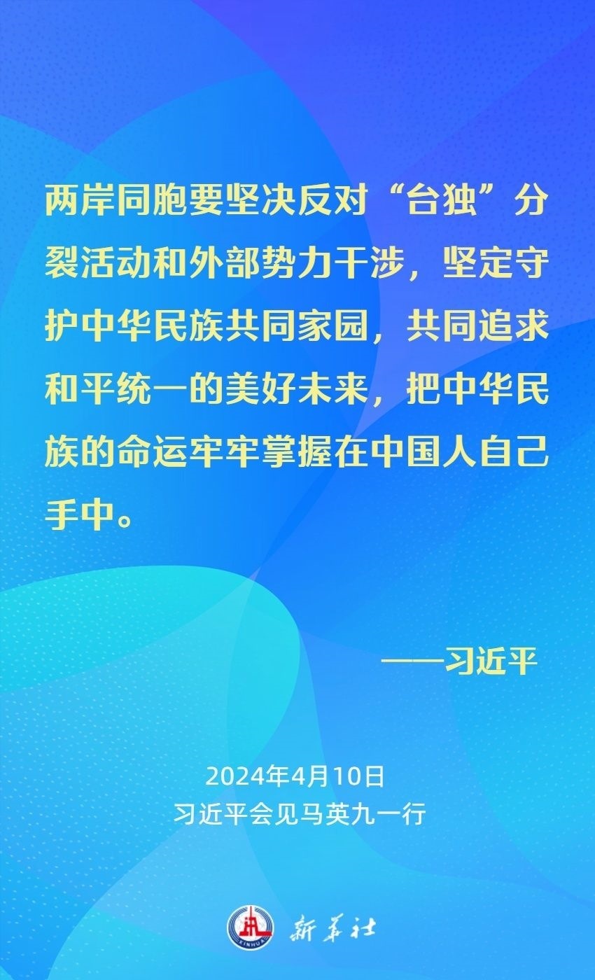 習(xí)近平強(qiáng)調(diào),兩岸同胞有共同的血脈、共同的文化、共同的歷史,更重要的是我們對民族有共同的責(zé)任、對未來有共同的期盼。我們要從中華民族整體利益和長遠(yuǎn)發(fā)展來把握兩岸關(guān)系大局。