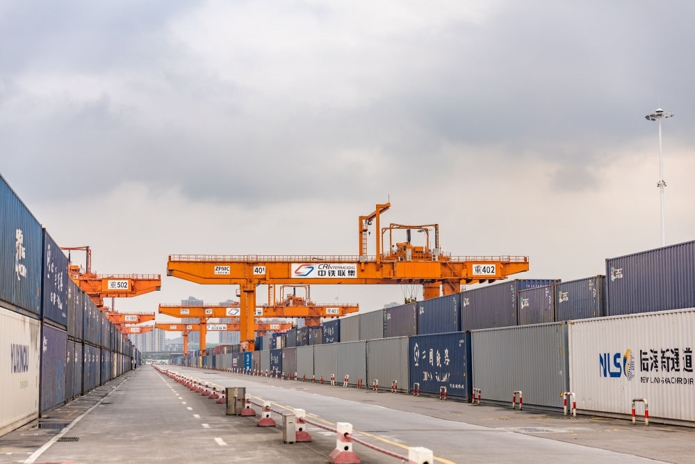 自重慶國際物流樞紐園區(qū)向南,西部陸海新通道直達(dá)廣西欽州港,“中國制造”在這里走向全球,來自全球的貨物又從這里進(jìn)入中國市場。