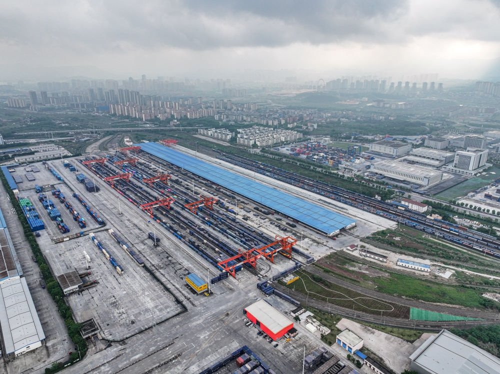 自重慶國際物流樞紐園區(qū)向北,一列列滿載貨物的中歐班列經(jīng)新疆霍爾果斯口岸出境,聯(lián)結(jié)起區(qū)域開放發(fā)展之路。