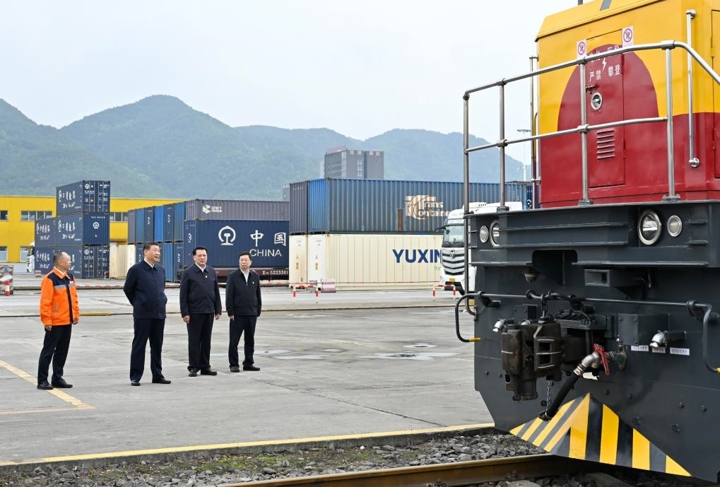 4月22日至23日,習近平總書記在重慶市考察調(diào)研。他來到重慶國際物流樞紐園區(qū),了解當?shù)丶涌旖ㄔO西部陸海新通道等情況。