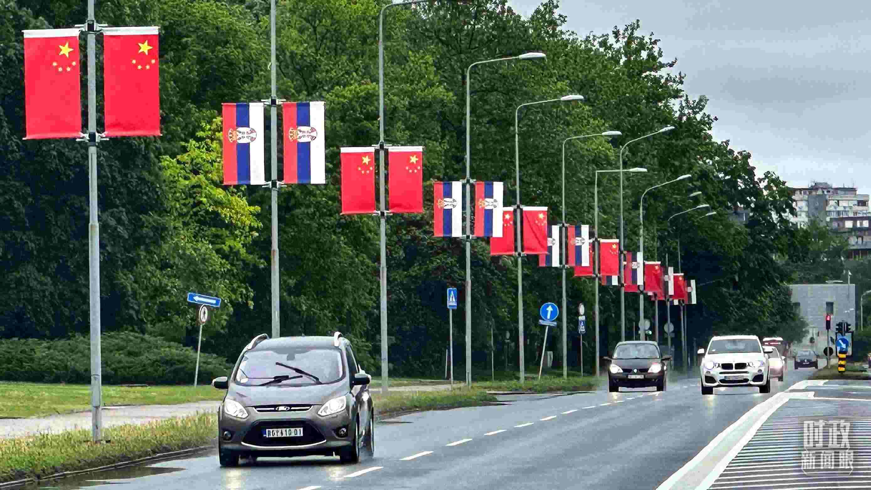 △貝爾格萊德的主要街道掛滿五星紅旗,隨風(fēng)飄揚(yáng)。(總臺(tái)央視記者范一鳴拍攝)