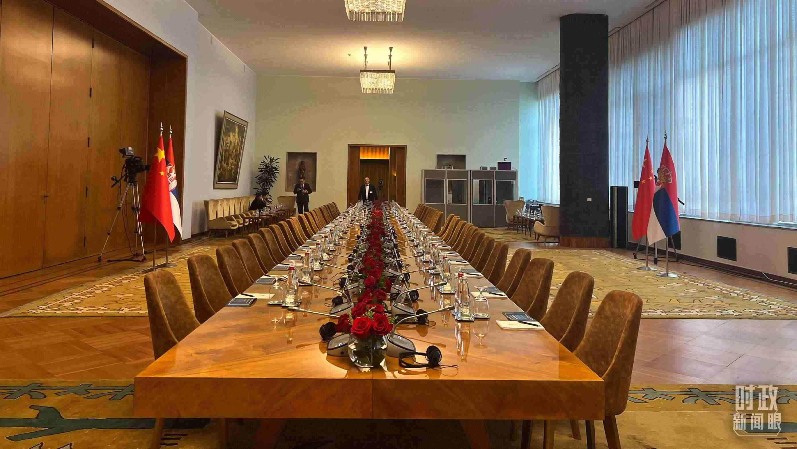 △5月8日上午,習(xí)主席同武契奇總統(tǒng)舉行大范圍會(huì)談,這是會(huì)談開始前的現(xiàn)場(chǎng)。(總臺(tái)央視記者張洛嘉拍攝)