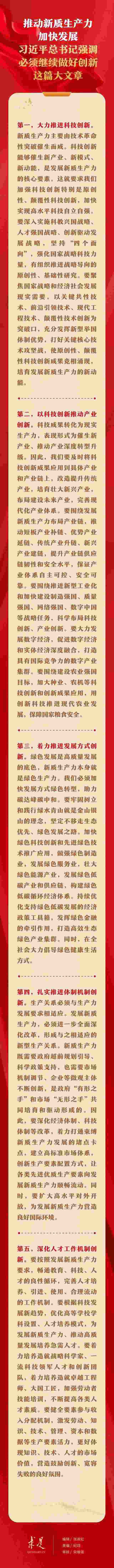 “新質(zhì)生產(chǎn)力的顯著特點(diǎn)是創(chuàng)新,既包括技術(shù)和業(yè)態(tài)模式層面的創(chuàng)新,也包括管理和制度層面的創(chuàng)新。必須繼續(xù)做好創(chuàng)新這篇大文章,推動新質(zhì)生產(chǎn)力加快發(fā)展。”