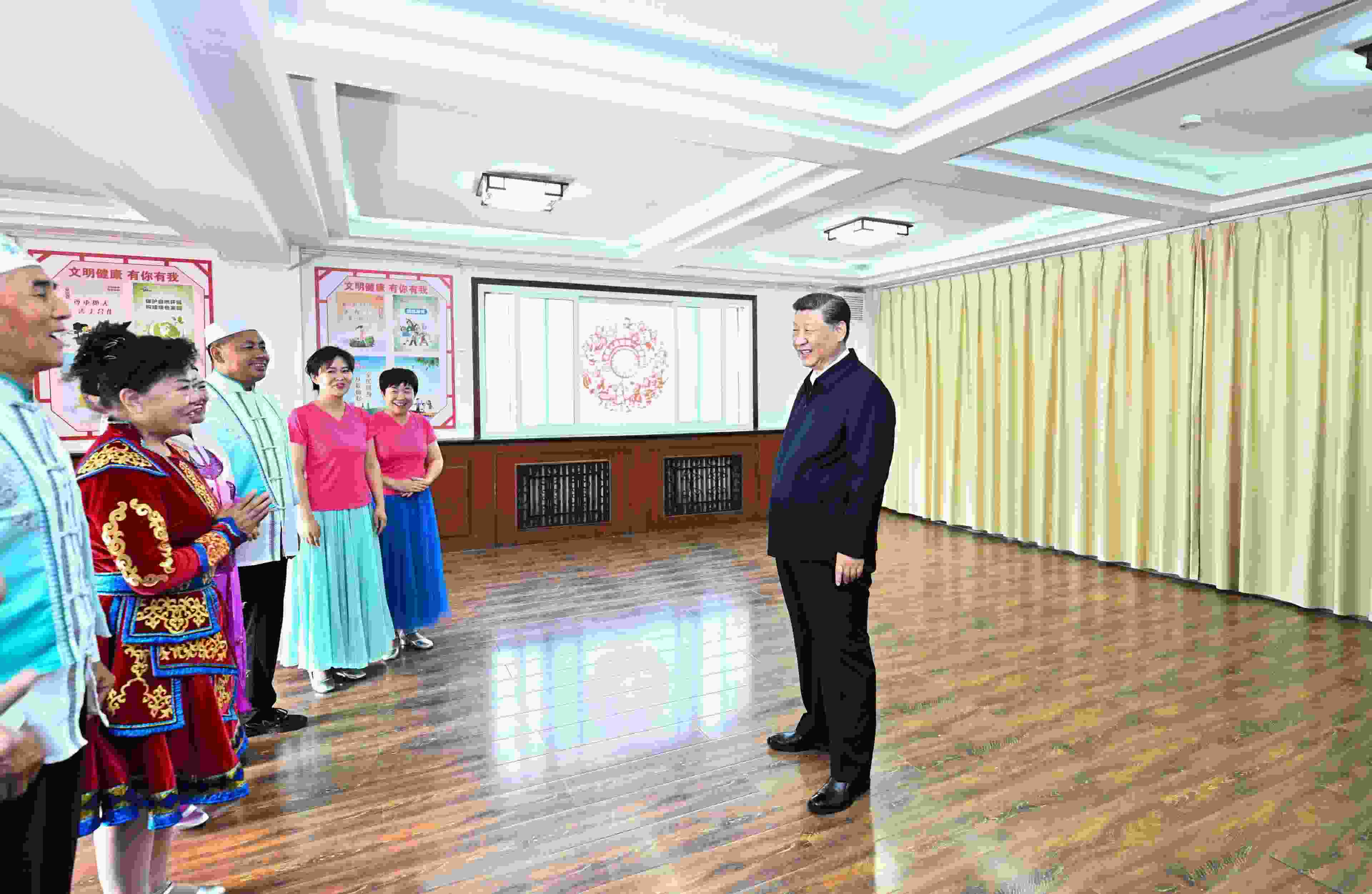 19 日下午,習(xí)近平總書記在寧夏回族自治區(qū)考察調(diào)研。他來到銀川市金鳳區(qū)長城花園社區(qū),了解社區(qū)發(fā)揮基層黨組織作用、優(yōu)化便民惠民服務(wù)、推動各族群眾交往交流交融等情況。(杜尚澤)