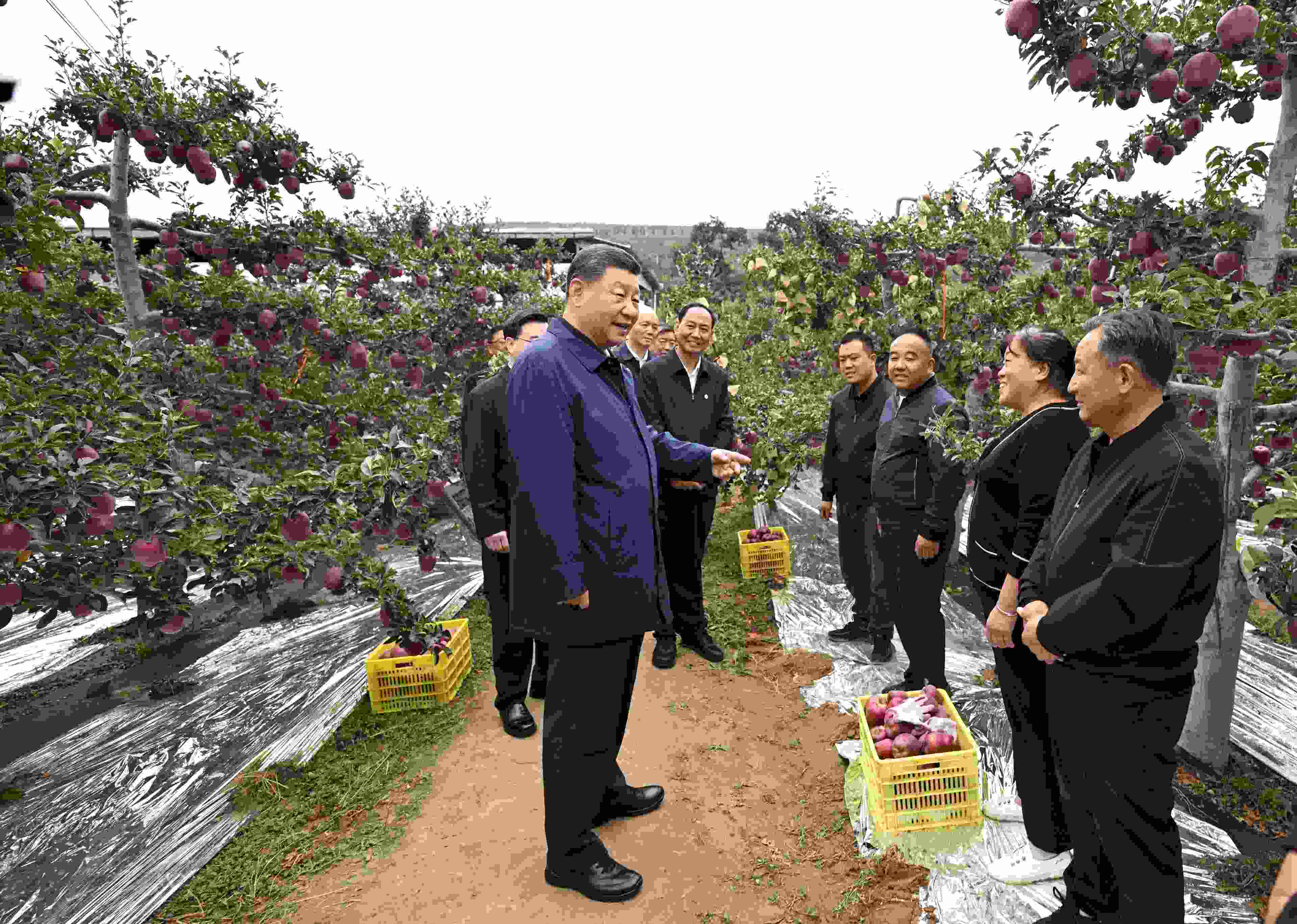 9月11日上午,習(xí)近平總書記來到甘肅天水市麥積區(qū)南山花牛蘋果基地考察,走進果林向現(xiàn)場的果農(nóng)、農(nóng)技人員等詳細(xì)詢問花牛蘋果品質(zhì)特色、種植技術(shù)、市場銷路等,并同鄉(xiāng)親們親切交流。習(xí)近平總書記說,鄉(xiāng)村振興要靠產(chǎn)業(yè),各地要各展其長,走適合自己的振興道路。習(xí)近平總書記勉勵鄉(xiāng)親們再接再厲,把蘋果產(chǎn)業(yè)做得更大更強,過上更加幸福的生活。