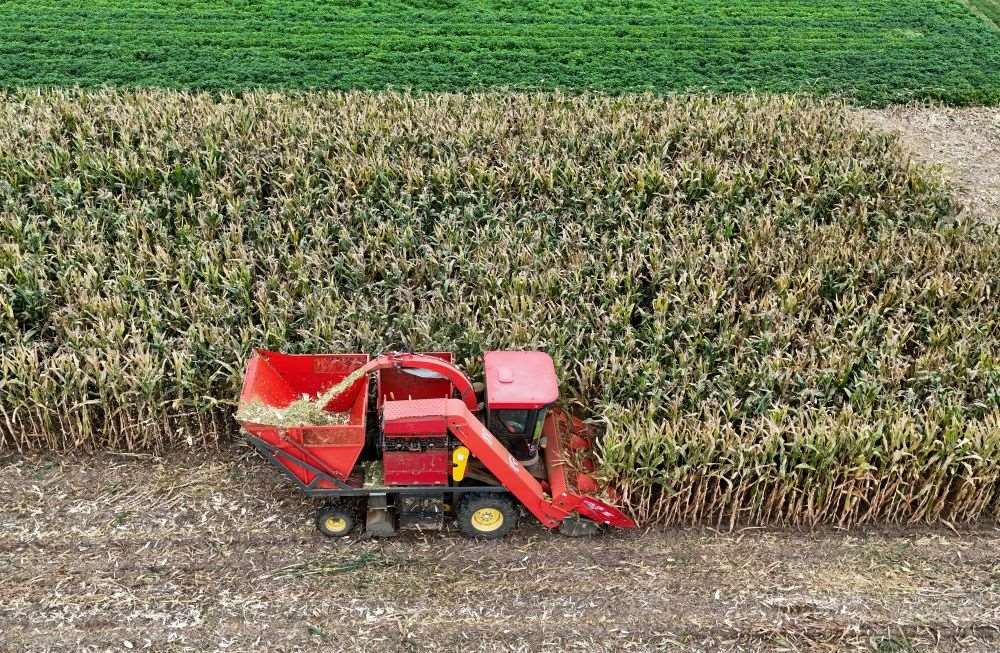 9月11日,河南省寶豐縣鬧店鎮(zhèn)司莊村農(nóng)民駕駛農(nóng)機(jī)收獲玉米。新華社發(fā) (何五昌攝)