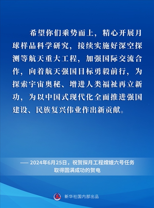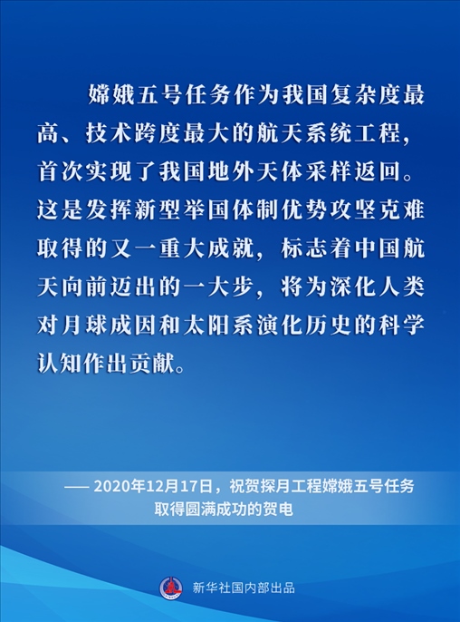 黨的十八大以來,在以習(xí)近平同志為核心的黨中央關(guān)心引領(lǐng)下,中國探月工程取得舉世矚目的重大成就,為探索宇宙奧秘、增進人類福祉屢立新功,為以中國式現(xiàn)代化全面推進強國建設(shè)、民族復(fù)興偉業(yè)作出卓越貢獻。
