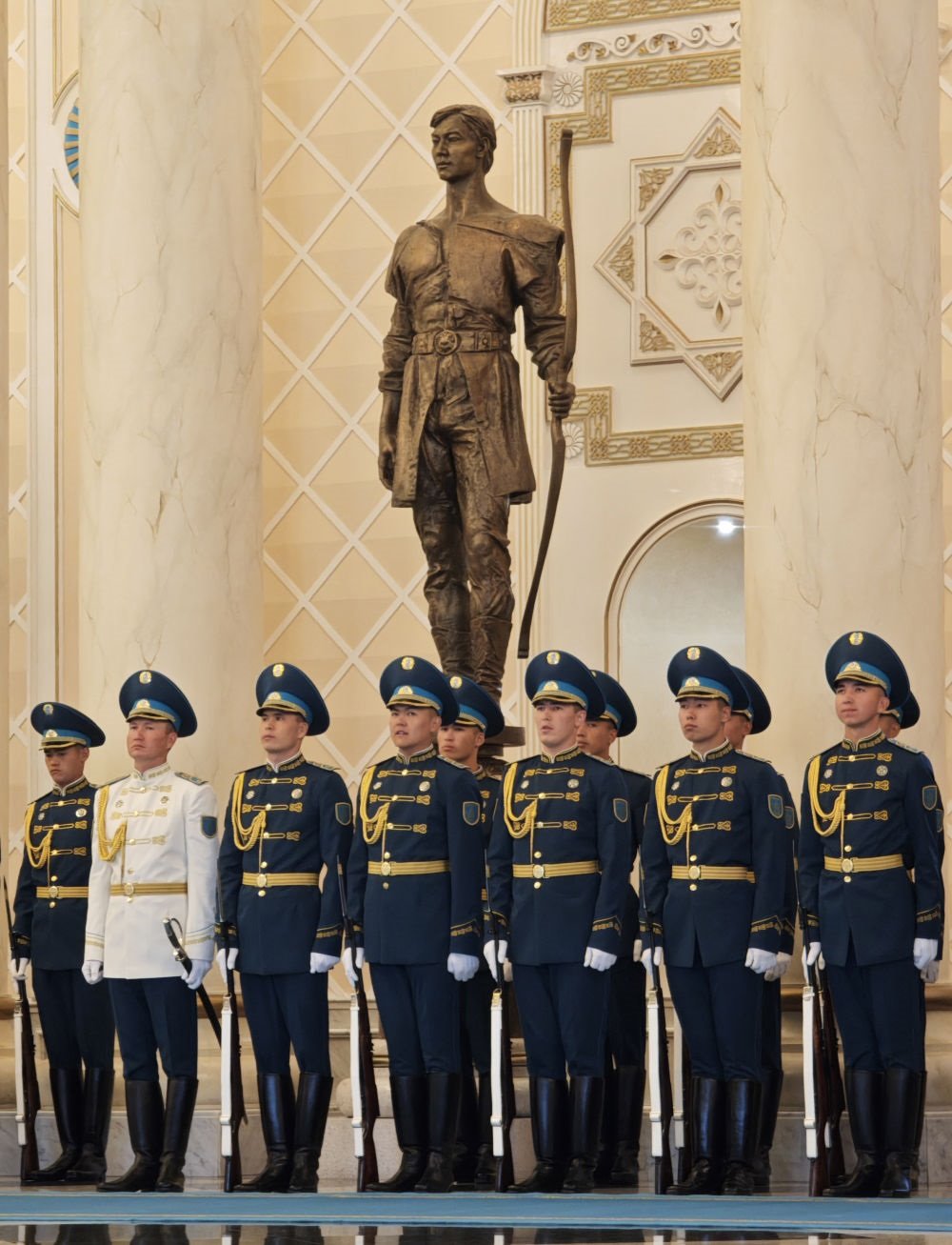 當(dāng)?shù)貢r間3日,國家主席習(xí)近平在阿斯塔納出席哈薩克斯坦總統(tǒng)托卡耶夫舉行的歡迎儀式。