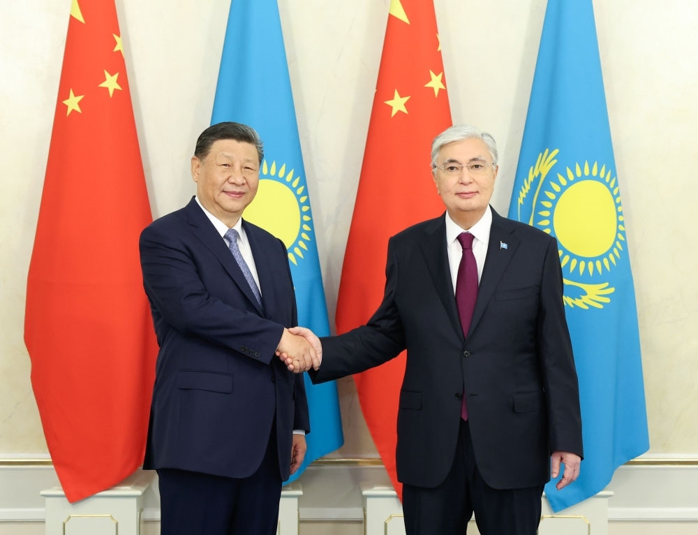 托卡耶夫?yàn)榱?xí)近平舉行隆重歡迎儀式。