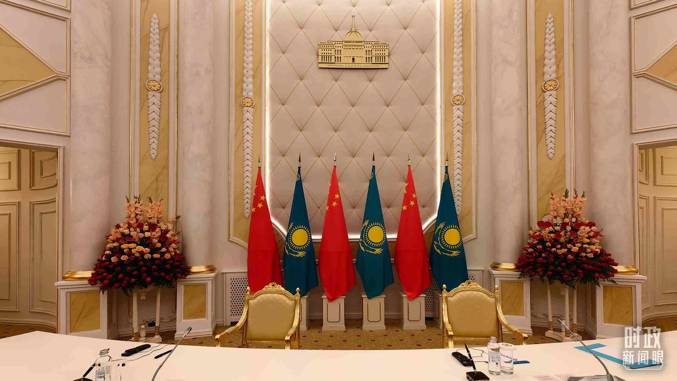 △中哈元首小范圍會(huì)談開始前的現(xiàn)場(chǎng)。(總臺(tái)央視記者劉岳拍攝)