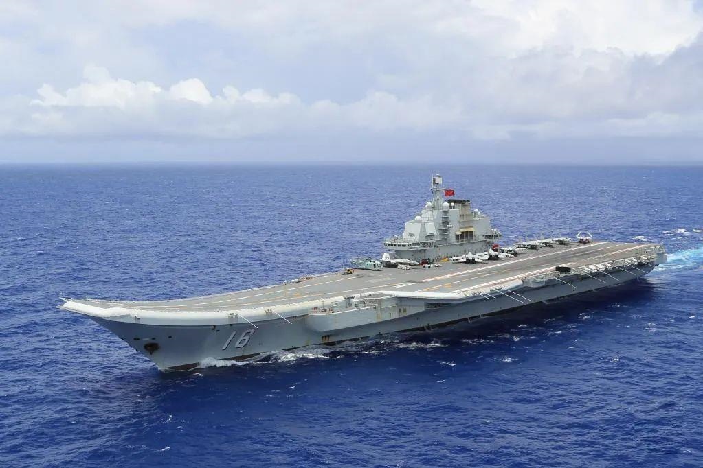 △遼寧艦在某海域機(jī)動(dòng)航行。