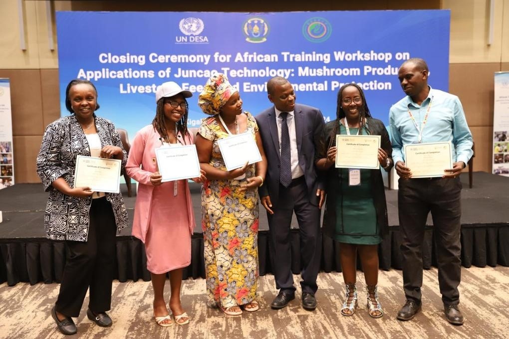 8月初,在非洲地區(qū)菌草技術(shù)培訓(xùn)班舉辦期間,聯(lián)合國(guó)官員和使團(tuán)代表團(tuán)專程赴盧旺達(dá)考察菌草技術(shù)和產(chǎn)業(yè)在非洲地區(qū)的發(fā)展?!拔液芨吲d同其他聯(lián)合國(guó)官員一起,親眼見證菌草技術(shù)以實(shí)際行動(dòng)造福民眾?!甭?lián)合國(guó)秘書長(zhǎng)辦公室主任考特尼·拉特雷說,菌草技術(shù)具有“可負(fù)擔(dān)”的突出優(yōu)勢(shì),“對(duì)非洲大陸所有發(fā)展中國(guó)家很有價(jià)值、非常適用”。
