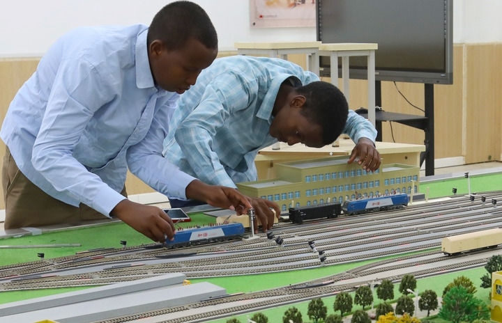 2022年9月19日,在位于吉布提首都吉布提市的吉布提工商學(xué)校,學(xué)生在魯班工坊鐵道運(yùn)營(yíng)沙盤教學(xué)區(qū)學(xué)習(xí)。新華社記者 董江輝 攝