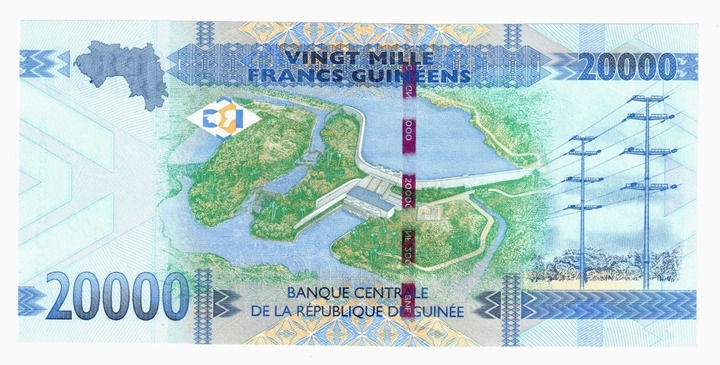 這是印有幾內(nèi)亞凱樂(lè)塔水電站效果圖的面值2萬(wàn)幾內(nèi)亞法郎的紙幣。新華社發(fā)