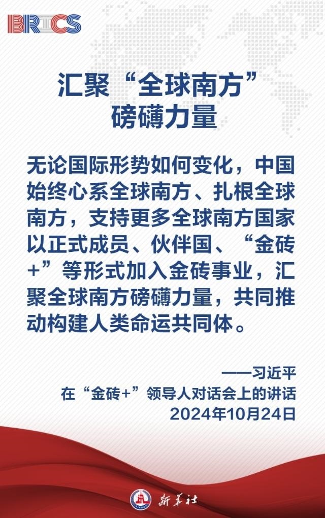當(dāng)?shù)貢r間10月24日上午,國家主席習(xí)近平在喀山會展中心出席“金磚+”領(lǐng)導(dǎo)人對話會并發(fā)表題為《匯聚“全球南方”磅礴力量 共同推動構(gòu)建人類命運(yùn)共同體》的重要講話,闡明中國主張——