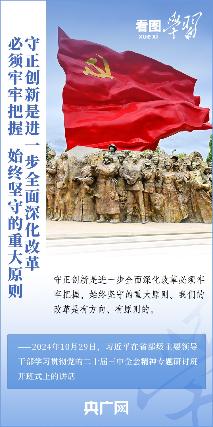 改革只有進(jìn)行時(shí),沒(méi)有完成時(shí)。10月29日,省部級(jí)主要領(lǐng)導(dǎo)干部學(xué)習(xí)貫徹黨的二十屆三中全會(huì)精神專題研討班在中央黨校(國(guó)家行政學(xué)院)開班。習(xí)近平總書記發(fā)表重要講話,就進(jìn)一步全面深化改革的一系列重大問(wèn)題進(jìn)行深刻闡釋,強(qiáng)調(diào)要牢牢把握、始終堅(jiān)守“守正創(chuàng)新”這一重大原則,把握好“四對(duì)關(guān)系”,奮力打開改革發(fā)展新天地。一起來(lái)學(xué)習(xí)!