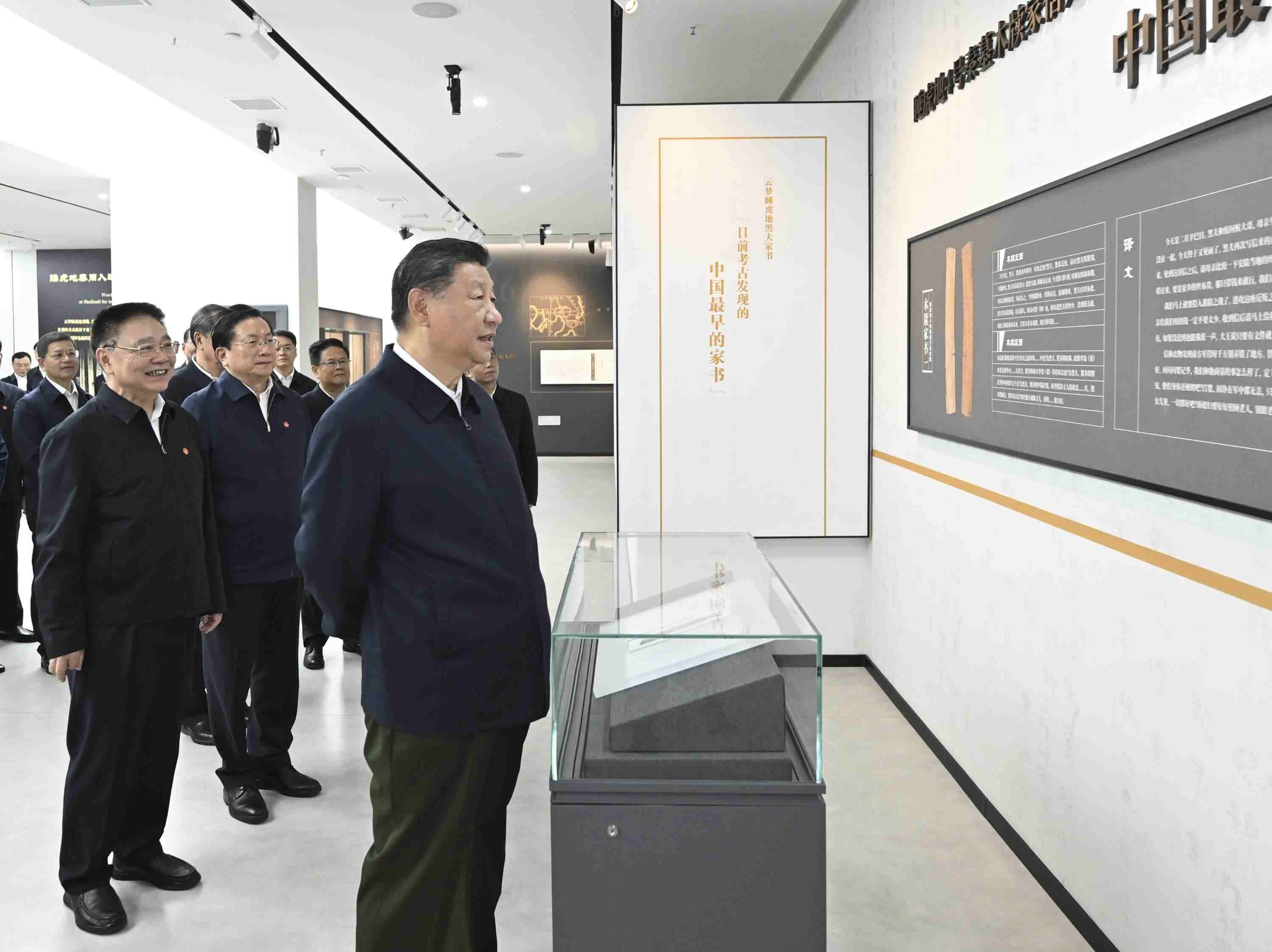 4日下午,習(xí)近平總書記來到湖北孝感市云夢縣博物館,參觀云夢出土秦漢簡牘展,詳細(xì)了解簡牘內(nèi)容、歷史文化價值和保護(hù)研究情況。習(xí)近平說,古代簡牘非常珍貴,是我們國家信史的重要實(shí)物佐證,要善加保護(hù),做好研究。要不斷通過考古發(fā)掘,為國家歷史提供更多不容置疑的佐證材料。(人民日報客戶端杜尚澤)