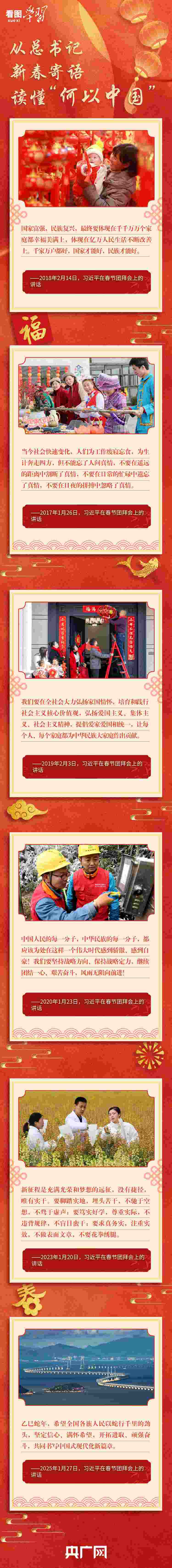 “千家萬(wàn)戶(hù)都好,國(guó)家才能好,民族才能好?!薄靶抡鞒淌浅錆M(mǎn)光榮和夢(mèng)想的遠(yuǎn)征,沒(méi)有捷徑,唯有實(shí)干”……每年春節(jié)團(tuán)拜會(huì)上,習(xí)近平總書(shū)記對(duì)同胞們飽含深情的新春祝福,鼓舞人心、凝聚力量。讓我們重溫這些暖心寄語(yǔ),在新的一年里,堅(jiān)定信心、滿(mǎn)懷希望,以蛇行千里的勁頭,為實(shí)現(xiàn)更加美好的未來(lái)不懈奮斗!
