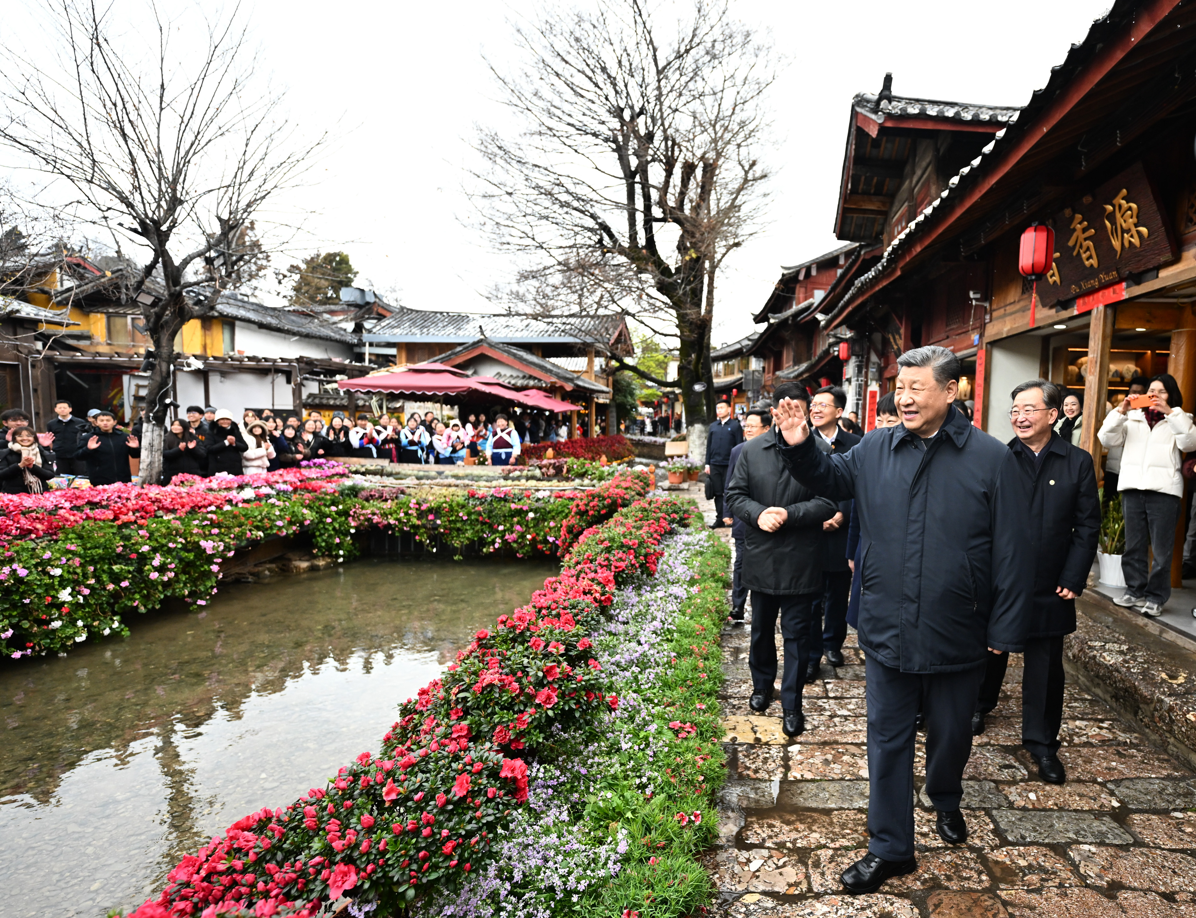 云南考察期間,總書記調(diào)研麗江花卉產(chǎn)業(yè)發(fā)展,了解麗江古城推動(dòng)文旅融合發(fā)展情況,祝愿麗江人民的生活如同納西族的“和”姓一樣,幸福安康、和和美美。如何深入推進(jìn)新時(shí)代興邊富民行動(dòng),是總書記思慮所系。