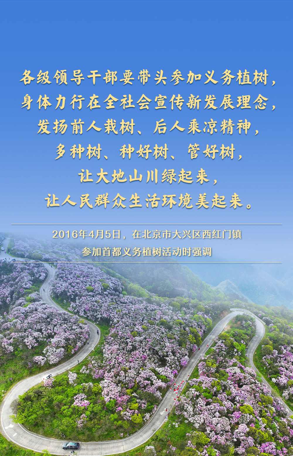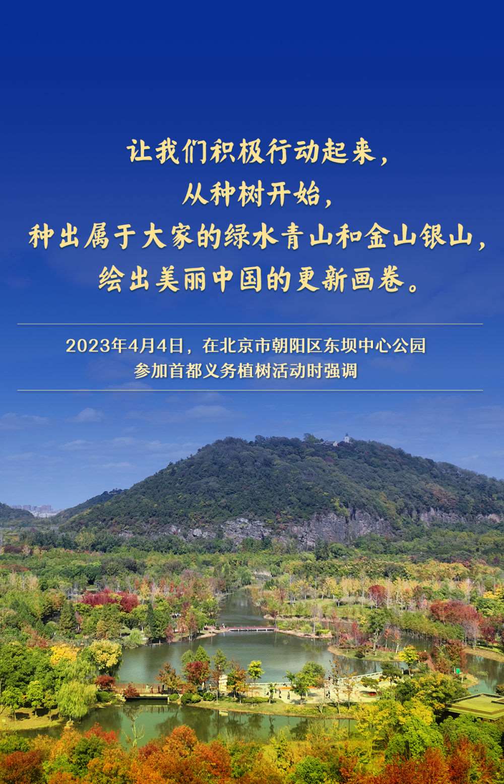 黨的十八大以來,習(xí)近平總書記高度重視國土綠化,每年都同干部群眾一起參加首都義務(wù)植樹,并作出一系列重要論述,為推進美麗中國建設(shè)、實現(xiàn)人與自然和諧共生的現(xiàn)代化指明方向。