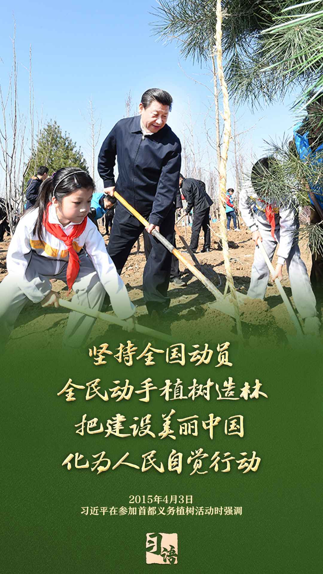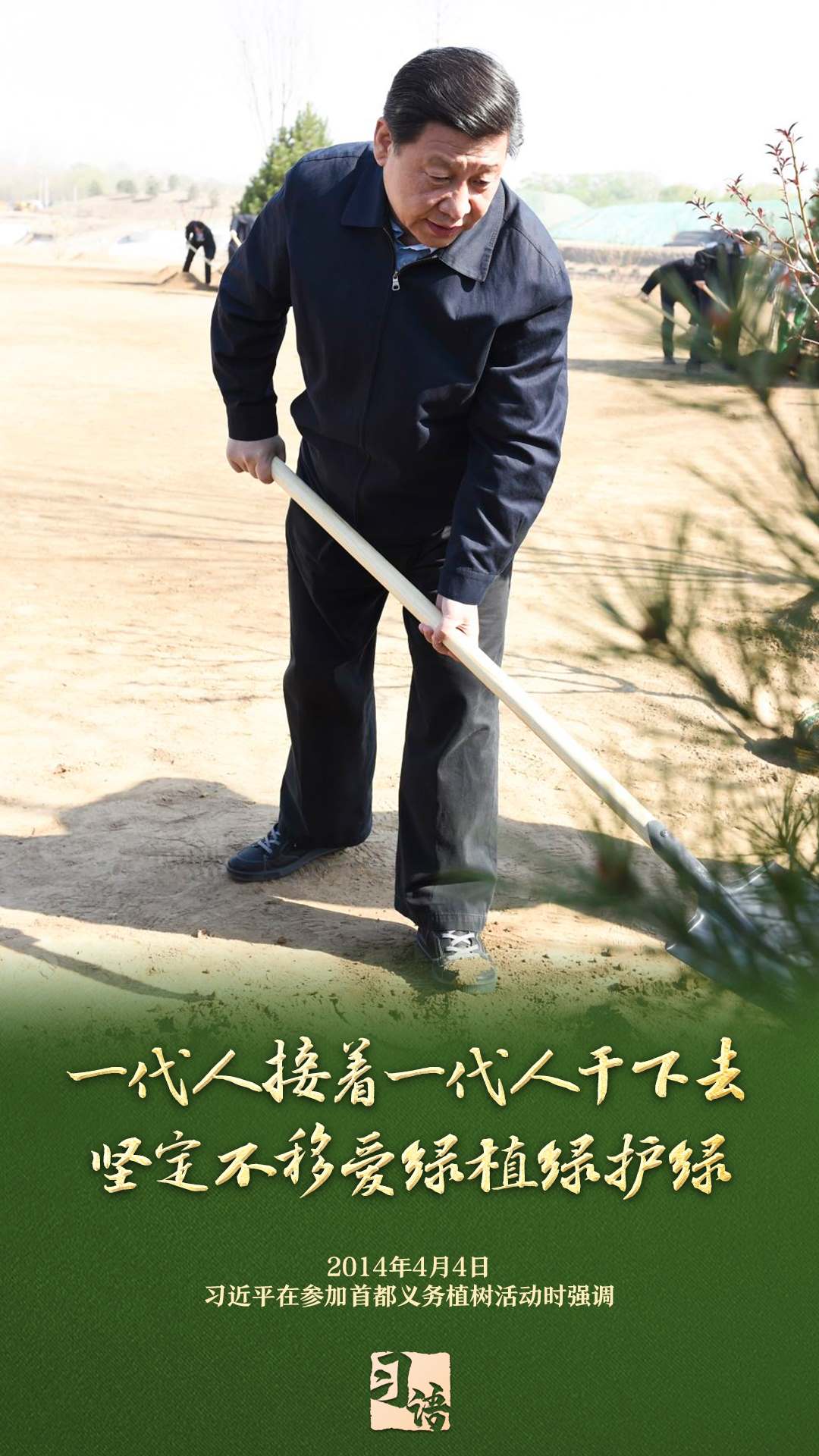 “植樹(shù)造林是一件很有意義的事情,是一項(xiàng)功在當(dāng)代、利在千秋的崇高事業(yè),要一以貫之、持續(xù)做下去?!弊?013年以來(lái)的13個(gè)春天里,無(wú)論晴雨,習(xí)近平總書(shū)記都會(huì)拿起鐵鍬,與干部群眾一起參加首都義務(wù)植樹(shù)活動(dòng)。鏟土造坑、培土圍堰、提水澆灌,總書(shū)記身體力行種下綠色的希望,對(duì)擴(kuò)綠興綠護(hù)綠、建設(shè)美麗中國(guó)提出明確要求。一起學(xué)習(xí)。