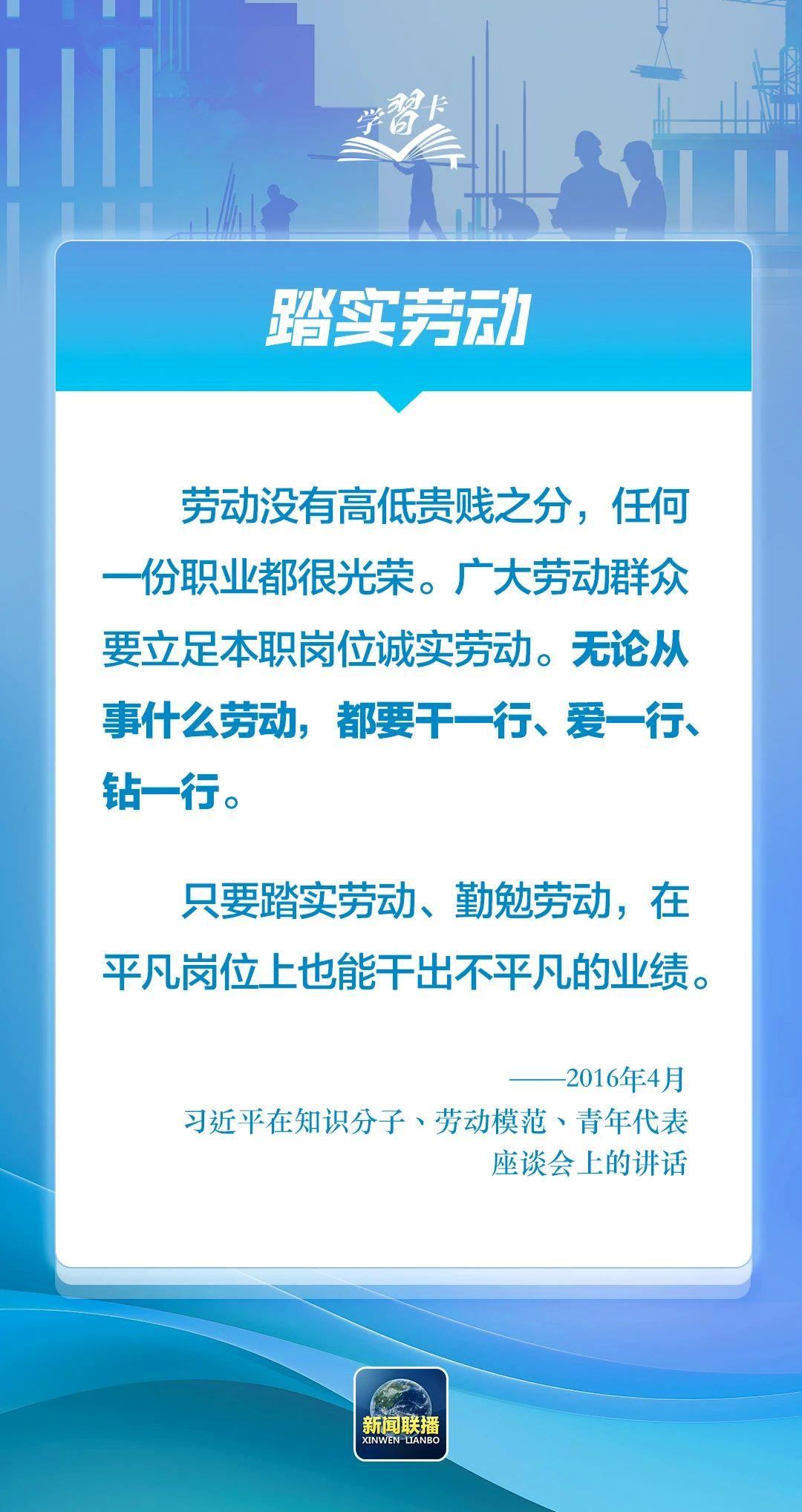 多年來,習(xí)近平總書記一直情系廣大勞動者。無論時代條件如何變化,我們都要大力弘揚勞動最光榮、勞動最崇高、勞動最偉大、勞動最美麗的社會風(fēng)尚,營造尊重勞動、尊重知識、尊重人才、尊重創(chuàng)造的良好氛圍。