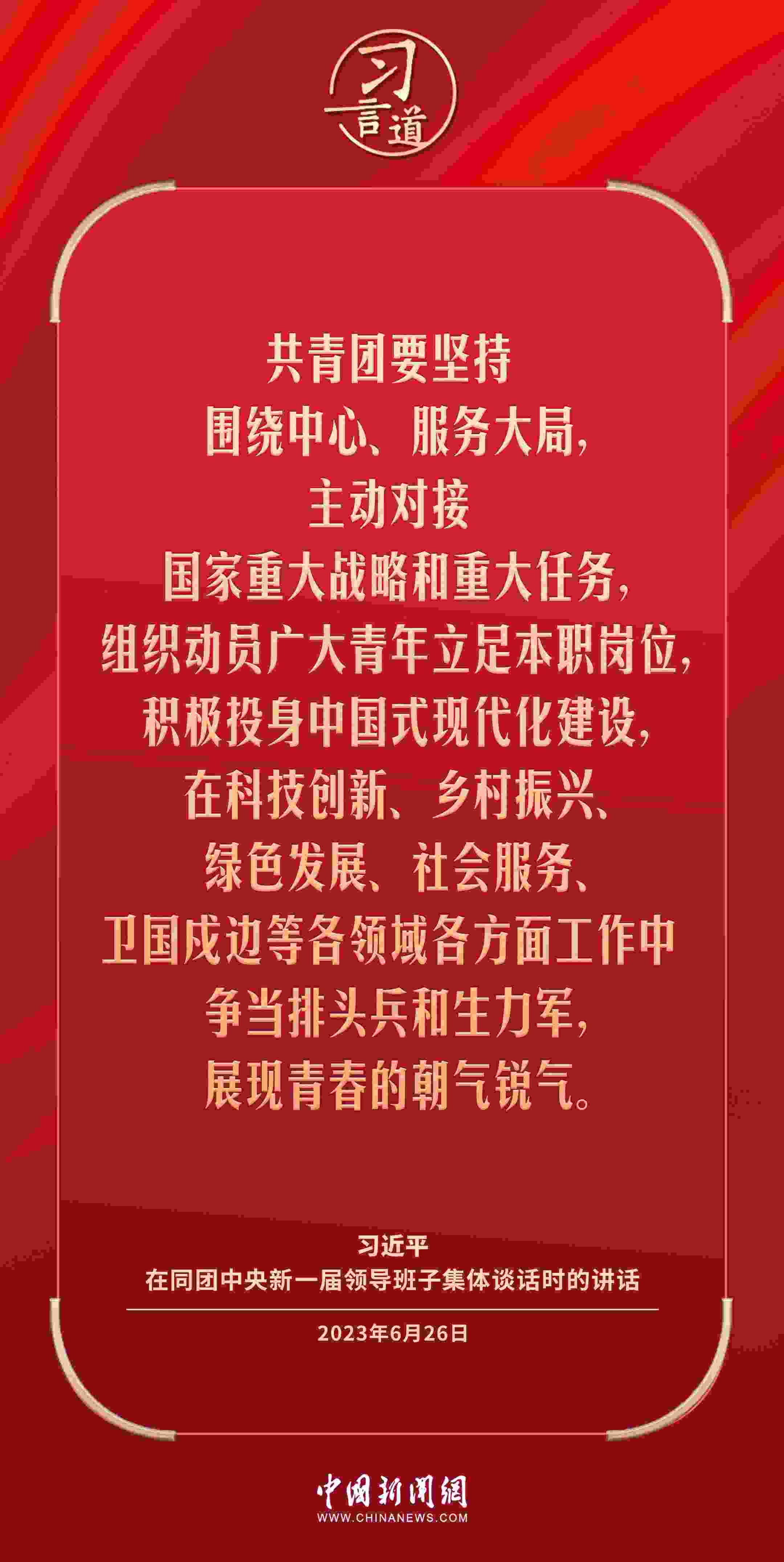 5月1日出版的《求是》雜志發(fā)表中共中央總書記、國家主席、中央軍委主席習(xí)近平的重要文章《激勵新時(shí)代青年在中國式現(xiàn)代化建設(shè)中挺膺擔(dān)當(dāng)》。這是習(xí)近平總書記2023年6月26日在同團(tuán)中央新一屆領(lǐng)導(dǎo)班子集體談話時(shí)講話的主要部分。