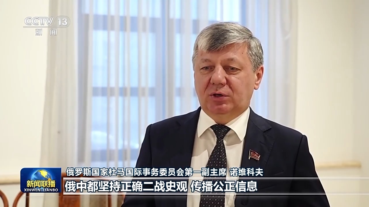 俄羅斯國家杜馬國際事務委員會第一副主席 諾維科夫:關(guān)于歷史觀,習主席有一系列重要論述,銘記歷史,和平才有希望。俄中都堅持正確二戰(zhàn)史觀,傳播公正信息,兩國領(lǐng)導人致力于推動建立更加平等和多極化的世界,構(gòu)建人類命運共同體理念在全球獲得廣泛認同。我認為在偉大衛(wèi)國戰(zhàn)爭勝利80周年的重要時刻,習近平主席來到莫斯科,對深化兩國關(guān)系、對全球都有重大意義。