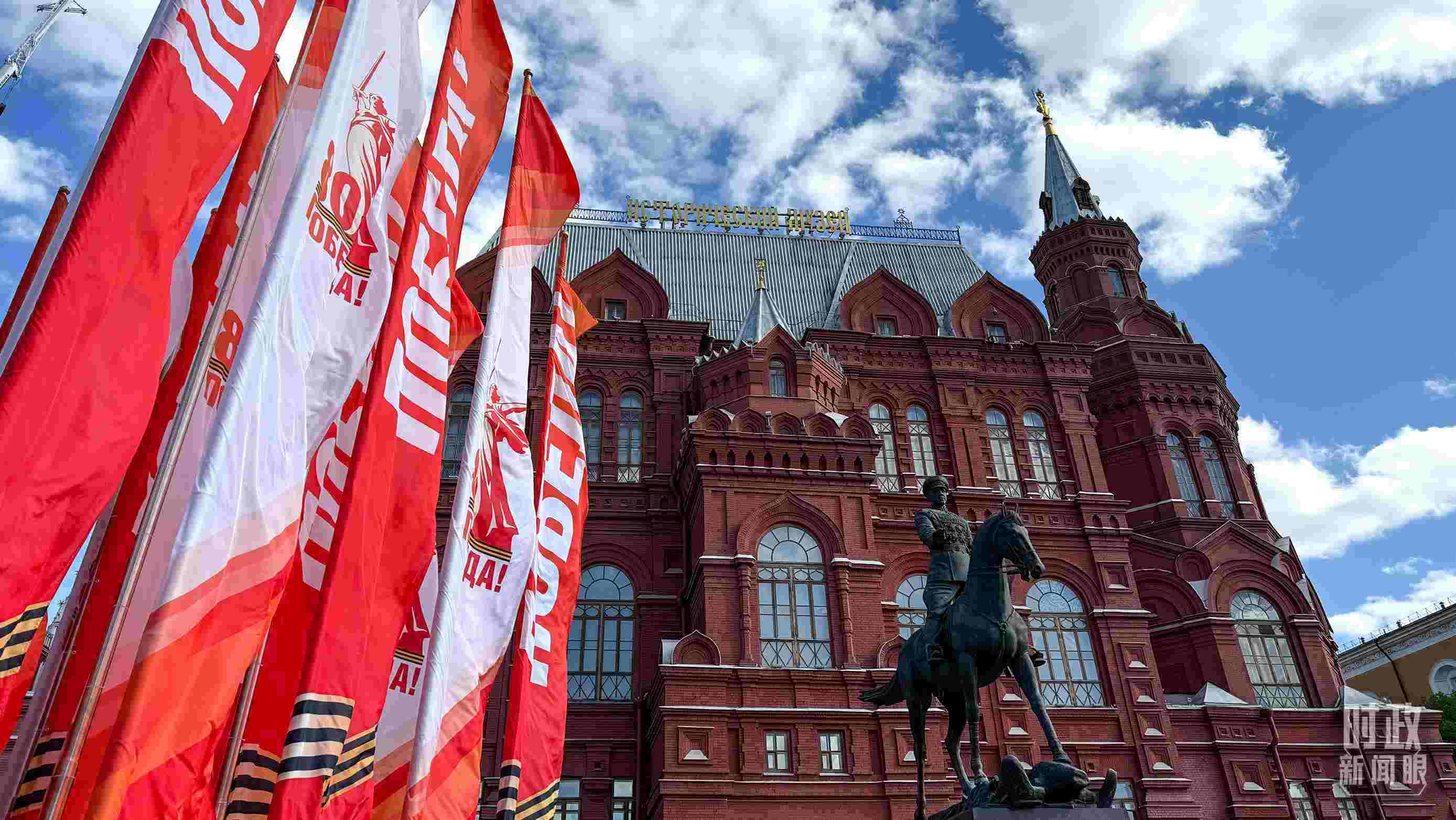 △莫斯科街頭的勝利日旗幟。(總臺央視記者楊波拍攝)