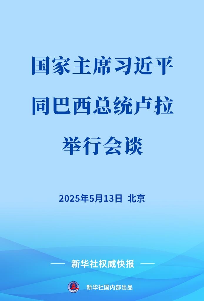 5月13日下午,國家主席習(xí)近平在北京人民大會堂同來華進行國事訪問的巴西總統(tǒng)盧拉舉行會談。