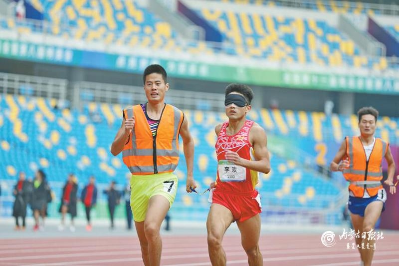 10月27日,內(nèi)蒙古盲人運(yùn)動(dòng)員李歡同他的領(lǐng)跑員楊愛瑞獲得男子800米t11級銅牌。
