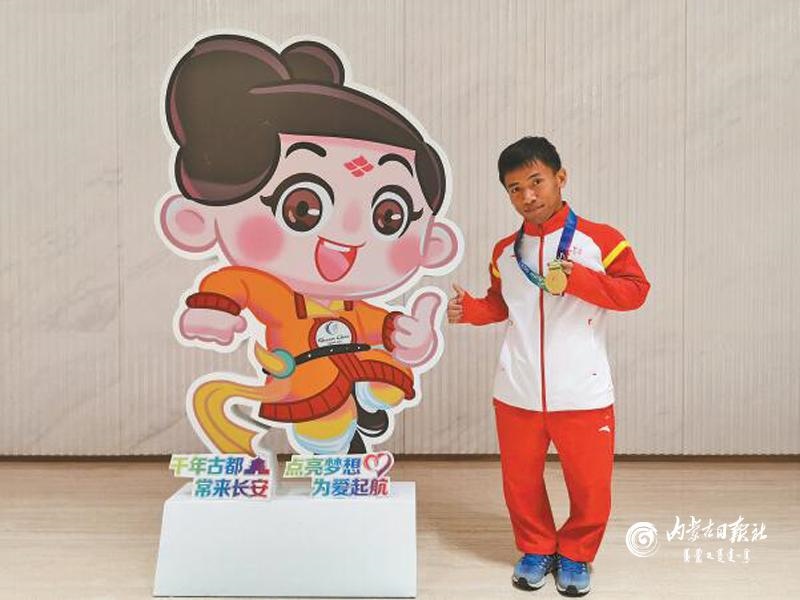 10月28日,內(nèi)蒙古代表團(tuán)旗手高永強(qiáng)在男子鏈球聽障決賽場上6 次投擲4 次打破全國紀(jì)錄,以絕對優(yōu)勢獲得金牌。
