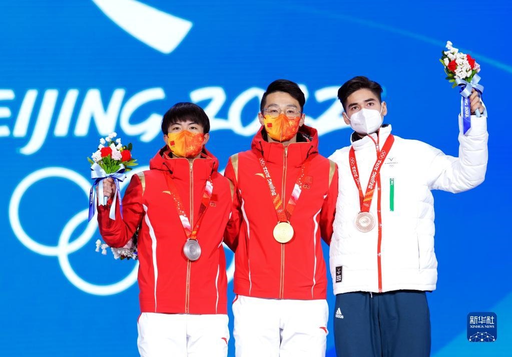 當(dāng)日,北京2022年冬奧會短道速滑男子1000米獎牌頒發(fā)儀式在北京賽區(qū)頒獎廣場舉行。