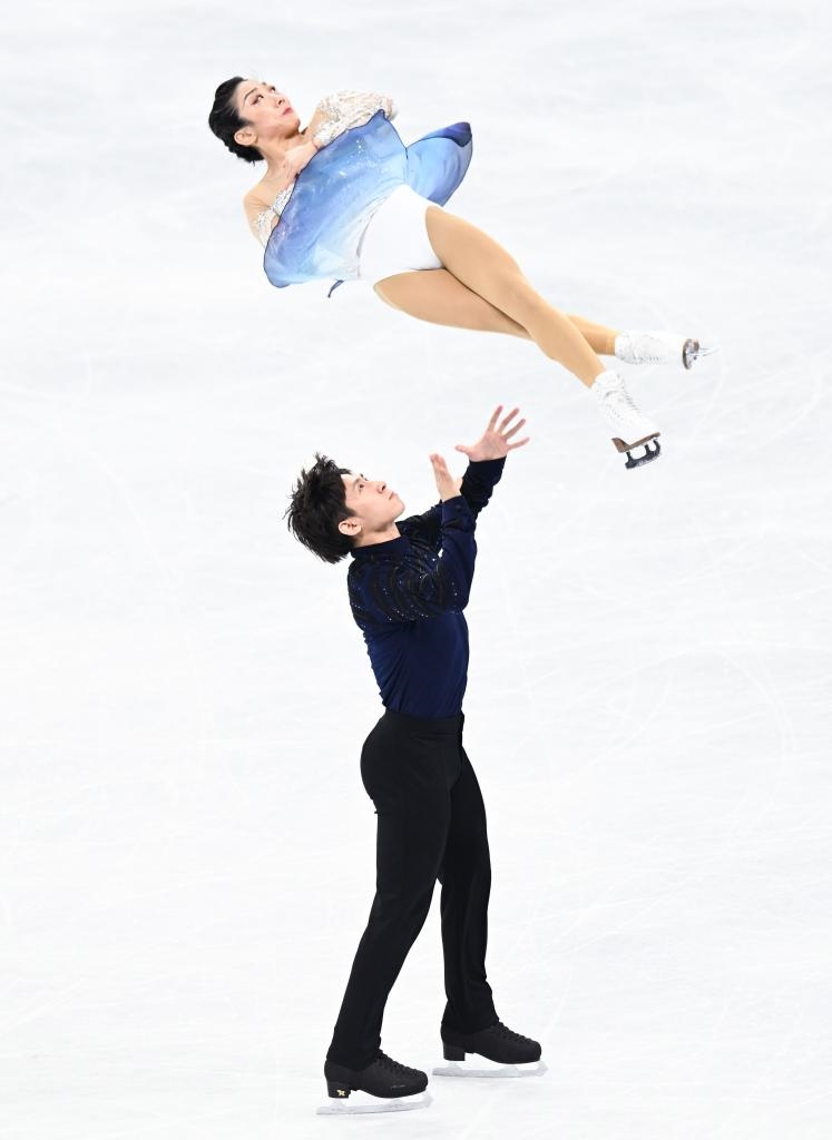 2月19日,中國選手隋文靜(上)/韓聰在比賽中。新華社記者李尕攝