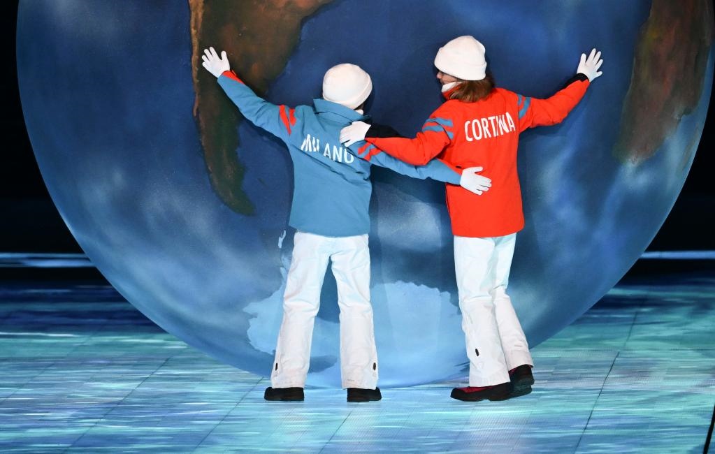 循著場地邊緣一道亮光,兩位意大利小朋友推動手工制作的地球走向中央。下一屆冬奧會舉辦地八分鐘表演“雙城璧合·聚力聯輝”拉開序幕。四年后,活力四射的時尚之都米蘭將攜手山川環(huán)繞的科爾蒂納丹佩佐,共襄冬奧盛會。山川與城市、自然與建筑相互映照,在共舞中寄寓著人類和自然間的彼此尊重、相互對話。