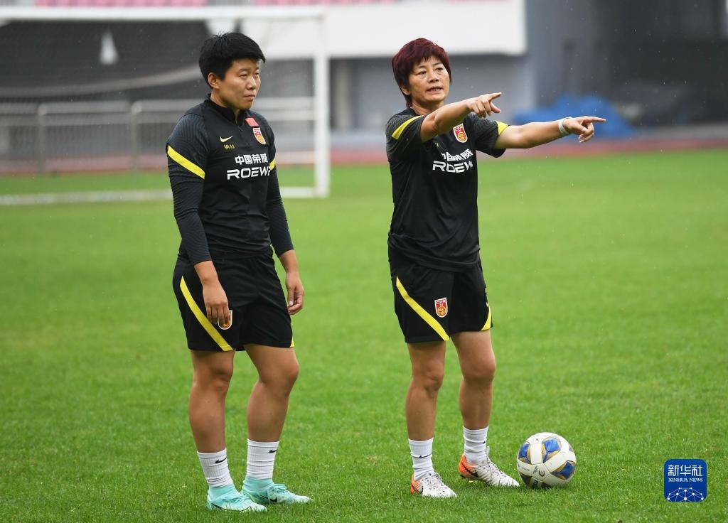 7月12日,主教練水慶霞(右)在訓(xùn)練中。新華社記者 李紫恒 攝