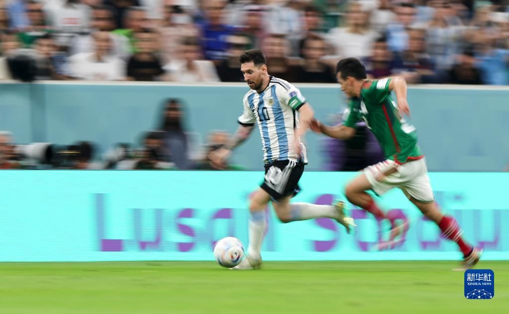 11月26日,阿根廷隊(duì)球員梅西(左)在比賽中帶球。新華社記者 曹燦 攝