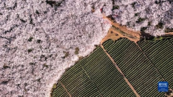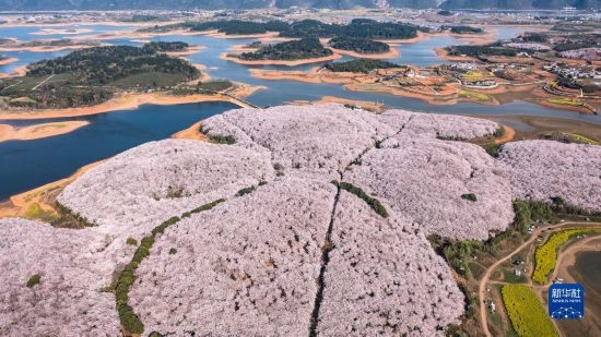 3月21日拍攝的貴州省貴安新區(qū)櫻花園(無人機照片)。