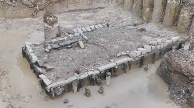 朔門古港遺址位于溫州古城北大門——朔門之外,南依古城,北鄰甌江,東靠海壇山,隔江與江心嶼雙塔遙相呼應(yīng)。2021年10月,溫州望江路下穿隧道施工過程中發(fā)現(xiàn)遺跡線索,工程立即停工。2022年,經(jīng)浙江省文物考古研究所與溫州市文物考古研究所聯(lián)合發(fā)掘,發(fā)現(xiàn)了分別建于宋元和明清的朔門甕城遺跡,實(shí)證千年以來岸線變遷的江堤、橋梁、陡門閘、棧道等建筑遺跡,還有8座宋代碼頭、2艘宋代沉船,以及數(shù)以噸計的宋元瓷片堆積和形式各樣的漆木器等遺物,年代主要集中于宋元時期。800年前溫州古港“城腳千家具舟楫,江心雙塔壓濤波”的繁華景象,重現(xiàn)于人們眼前。