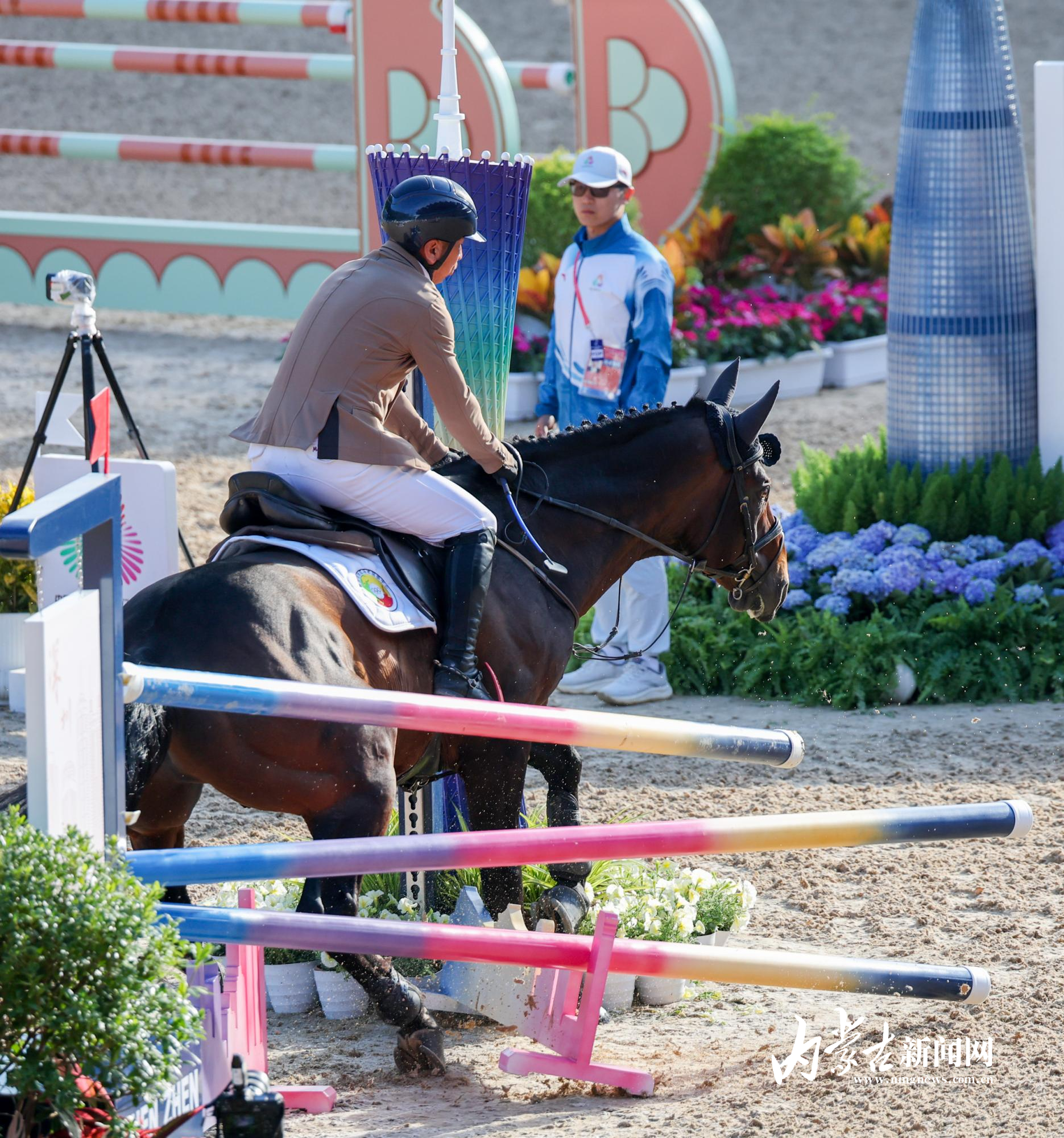 11月17日,第十五屆全國運動會馬術(shù)項目場地障礙團(tuán)體賽在深圳市光明國際馬術(shù)中心進(jìn)行,由達(dá)日瑪、劉同晏、張睿、韓豐組成的內(nèi)蒙古隊?wèi){借兩輪穩(wěn)定發(fā)揮,以總罰分31分的成績斬獲銅牌。