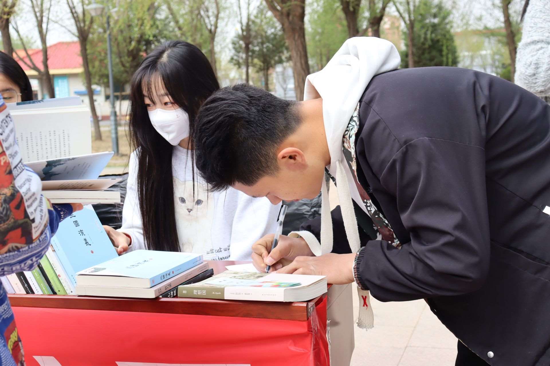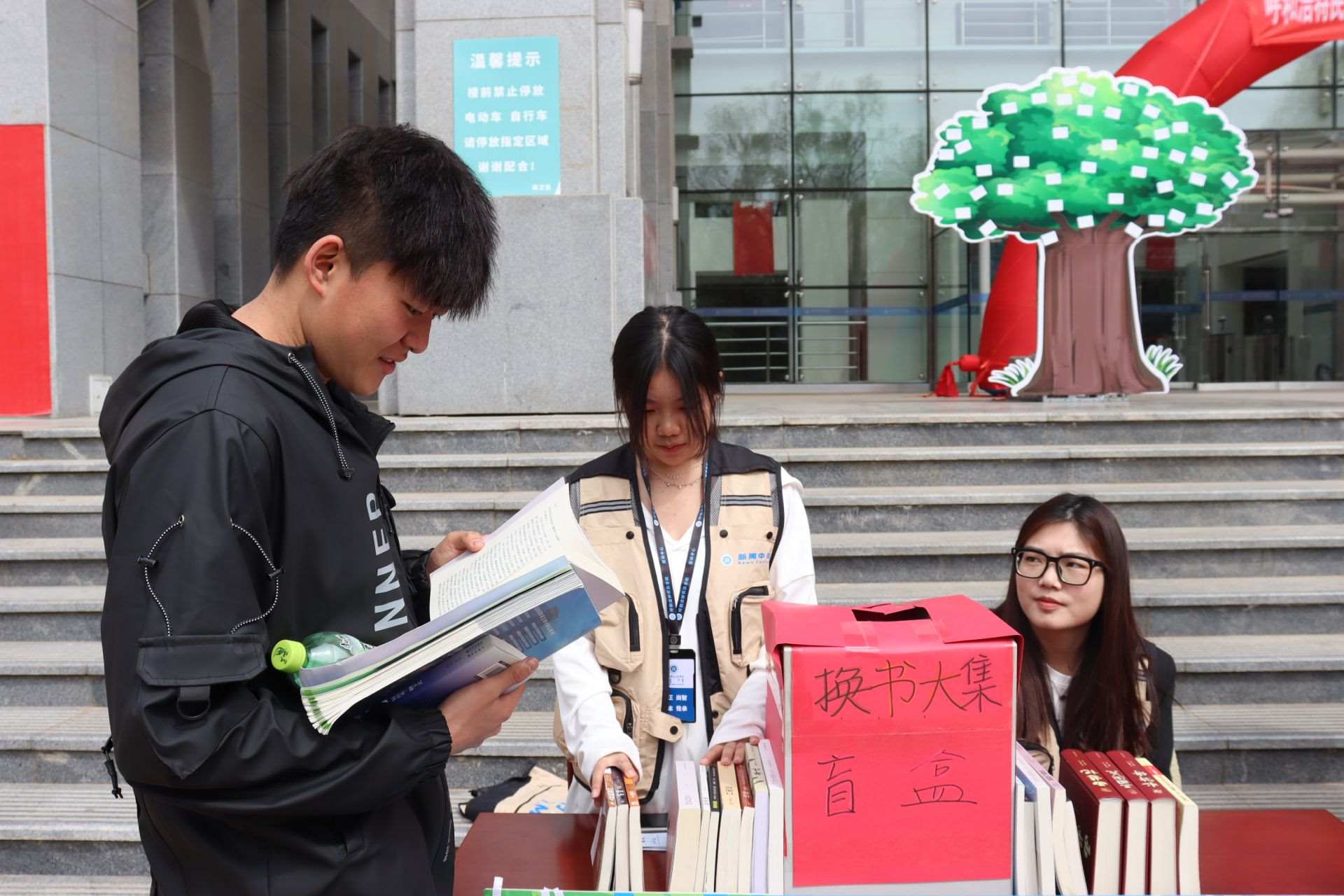 風和日麗,春暖花開。4月23日,第28個世界讀書日,呼和浩特民族學院在南區(qū)圖書館前開展“換書大集”活動,現(xiàn)場共設置18個換書展位,特別設立換書“盲盒區(qū)”,現(xiàn)場換書300余本,同學們廣泛參與,場面火熱。