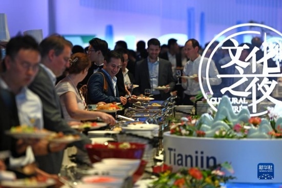 6月27日,與會嘉賓在第十四屆夏季達(dá)沃斯論壇文化之夜現(xiàn)場了解天津特色美食。