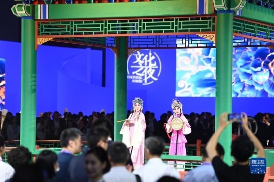 當(dāng)晚,第十四屆夏季達(dá)沃斯論壇文化之夜在天津梅江會展中心舉行。與會嘉賓伴隨著文藝演出,品嘗天津特色美食,體驗中國傳統(tǒng)文化。新華社記者 趙子碩 攝
