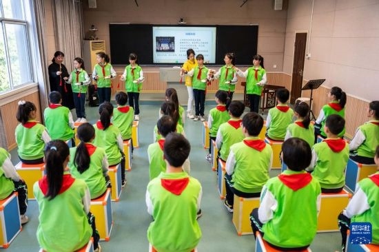 這是4月12日在武陵區(qū)北正街小學(xué)拍攝的常德絲弦教學(xué)課堂。